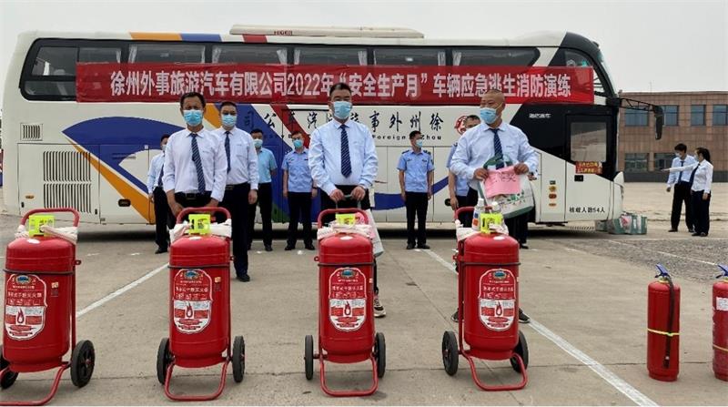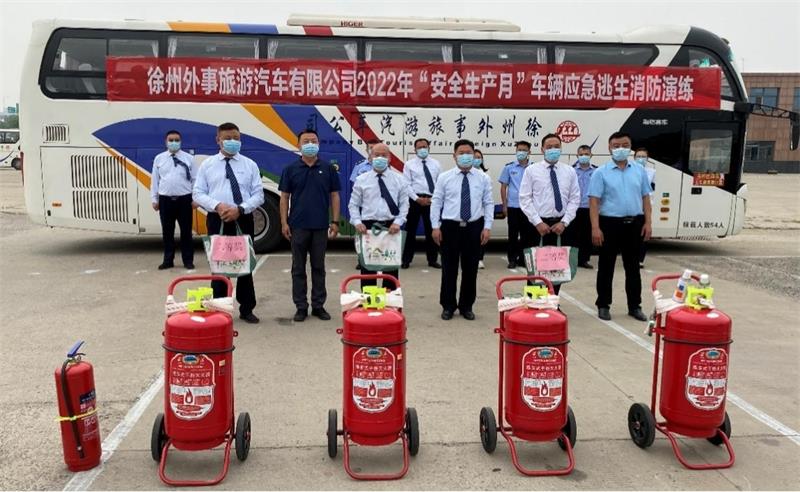 本次车辆应急逃生消防演练,由徐州市交通运输综合行政执法支队主办,徐州外事旅游汽车有限公司具体承办。特邀徐州市交通运输综合行政执法支队、中国矿业大学、大龙湖街道办事处、大龙湖消防大队文博园消防救援站、徐州交巡警支队大龙湖大队及徐州市各客运企业的领导们,莅临指导观摩。徐州外事尚振堂副总经理做演练动员讲话,总经理助理、安全机务部经理刘金忠主持本次安全应急演练。