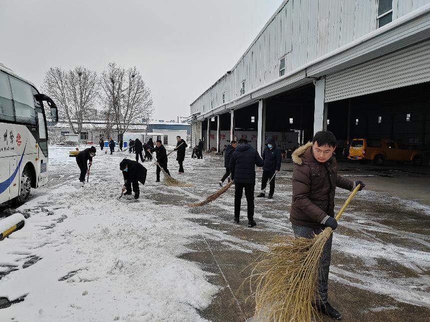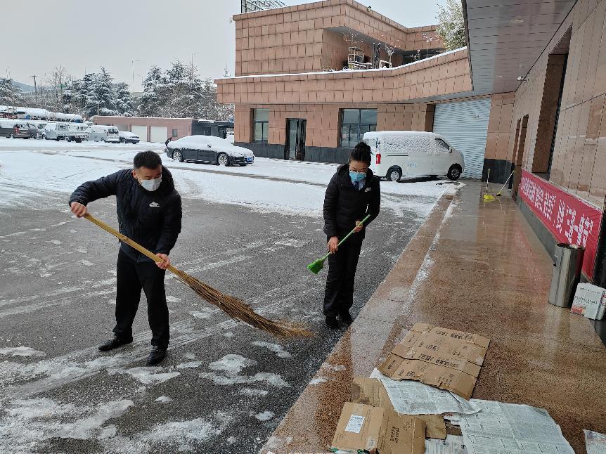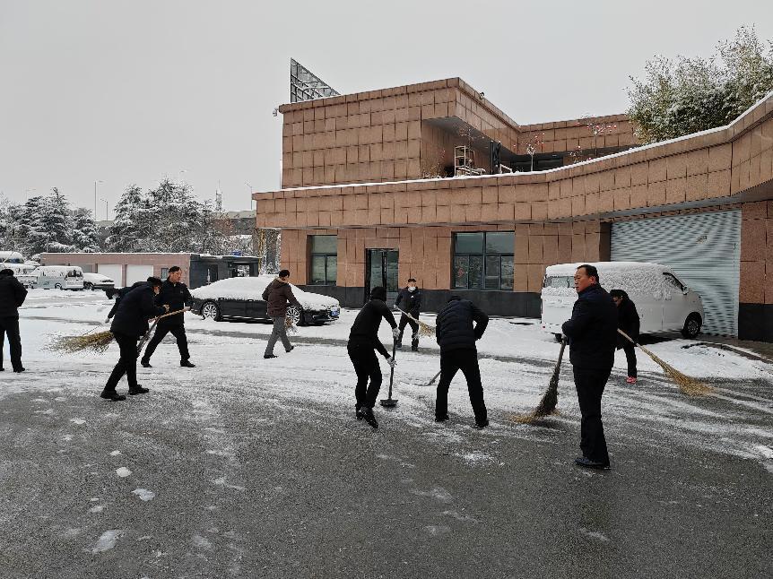 公司组织广大党员干部职工,集体深入车间、维保区域、充电场所、办公楼前、停车棚,分组、分片对积雪区域进行清理。大家挥舞着铁锹和扫帚,你铲我扫,一点点地将积雪与残冰铲除,经过大家共同努力,公司院内积雪情况面貌一新。